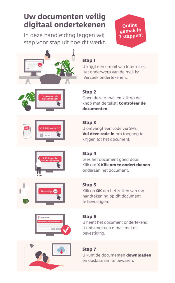 • Heeft u de documenten niet gedownload nadat u digitaal tekende? Stuur een mail naar info@intermaris.nl of bel ons op 088 25 20 100. We sturen u dan alsnog een kopie.