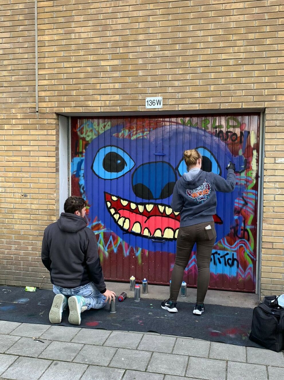 De garageboxen van de Rudolf Garrelsstraat staan op dit moment leeg. Om ook de jongeren te betrekken bij de renovatie organiseerden wij een graffiti workshop. Afgelopen zaterdag leefde een enthousiaste groep jongeren zich uit en heeft de garageboxen kleur gegeven. Onder professionele begeleiding van Graffitinetwerk ontstonden de mooiste kunstwerken. Het was een leerzame en leuk ochtend voor iedereen!