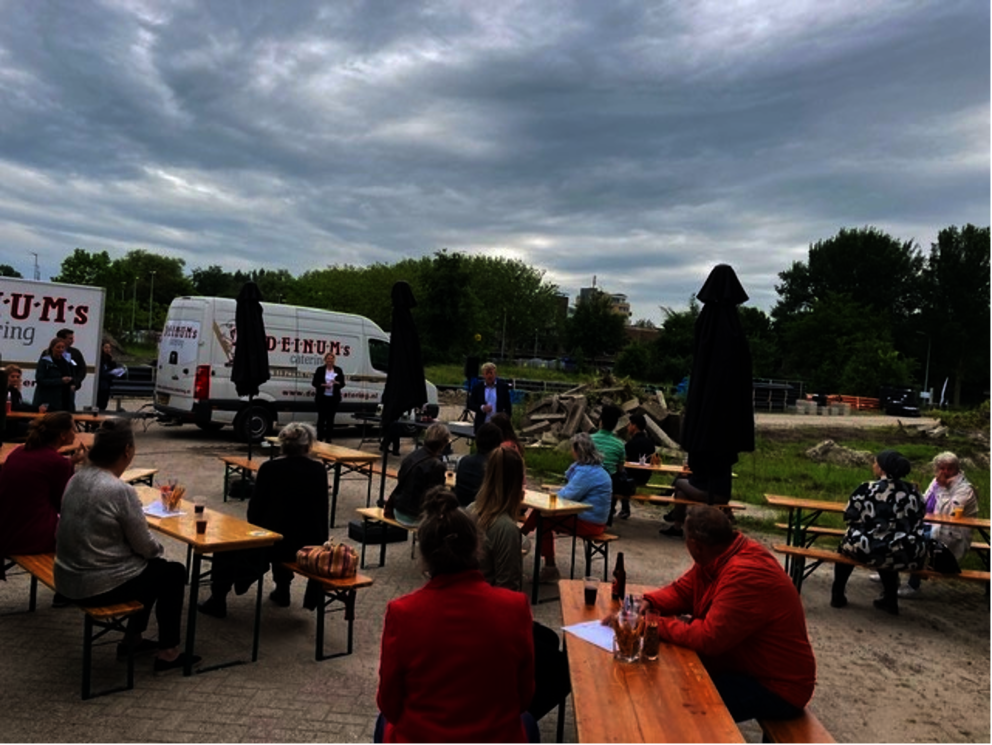 Ze konden onder het genot van een hapje en een drankje met elkaar kennismaken. En ze speelden samen een pubquiz met vragen over de oorspronkelijke bestemming van de bouwplaats en over de plaats Hoorn en zijn geschiedenis. De winnaars gingen er vandoor met echte Hoornse broeder.