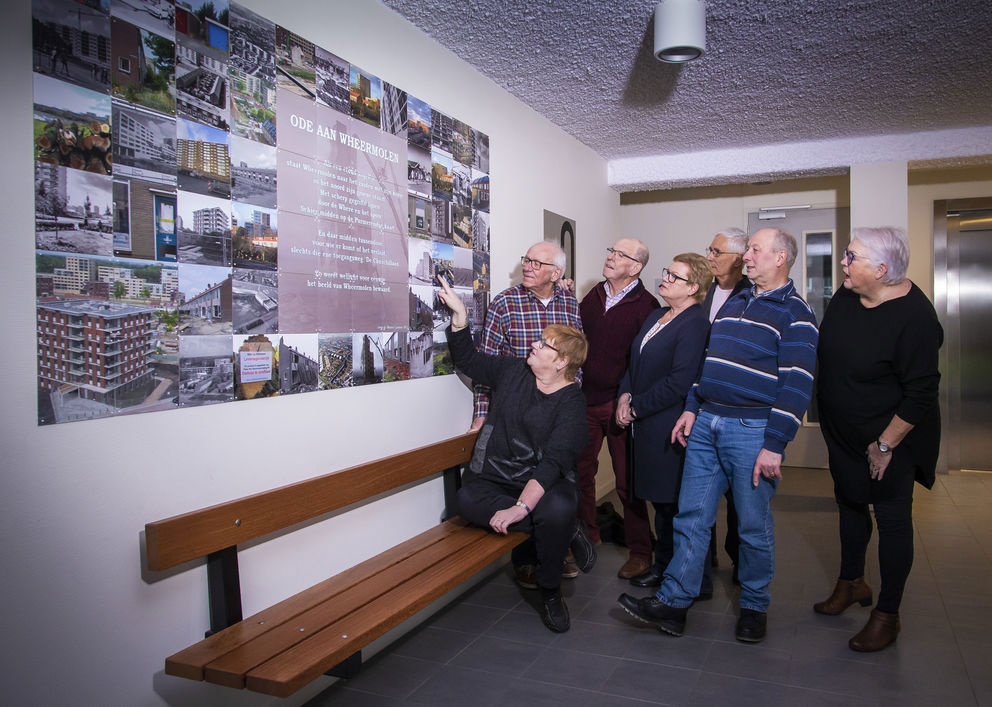 “Het moest een ode aan de wijk Wheermolen worden: een collage van foto’s van vroeger tot nu, zodat iedereen wel ergens herkenning ziet”, vertelt Tonnie Knight. Met hulp van onder meer Vincent Hoogendijk van het Waterlands Archief verzamelde de bewonerscommissie een fraaie verzameling foto’s. Annelies Surig: “We vonden ook een prachtig gedicht over onze wijk. Er stond Joop de Winter onder. We zochten hem op en vroegen of we het mochten gebruiken. Hij was vereerd.”