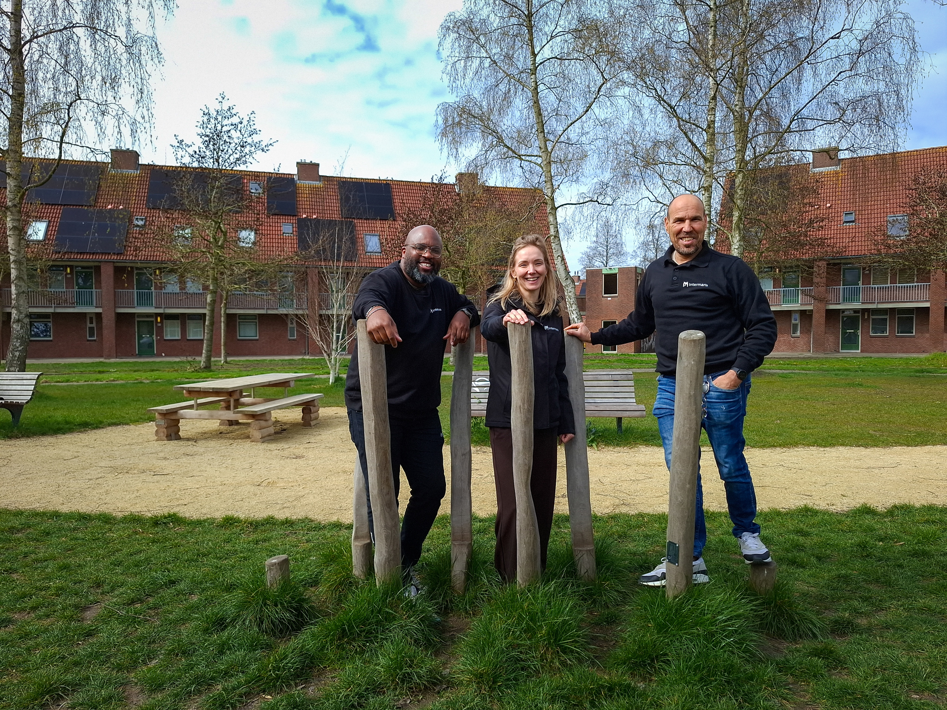 Dit zijn Farley, Ilse en Abdel. Als buurtteam van de Kersenboogerd zijn zij dagelijks in de wijk te vinden. ‘Wij werken heel praktisch’, vertelt Ilse. ‘We spreken bewoners aan als dat nodig is. Als er een probleem is, zoeken we samen naar een oplossing. En als het lukt, betrekken we buurtgenoten hierbij. Samenleven doen we met elkaar!’
