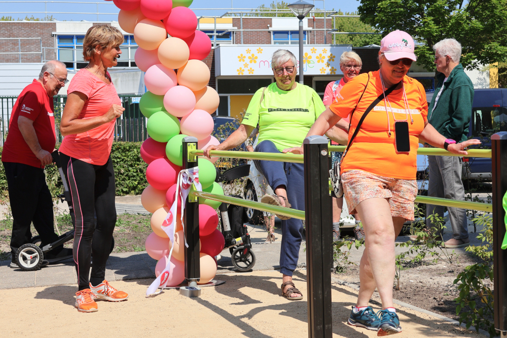 Het Olga Commandeur plein bij Betsy Perk is officieel in gebruik. De beweegtuin met speeltoestellen werd donderdag 8 juni feestelijk geopend door oud-topsportster Olga Commandeur en wethouder Karin Hakhoff. Onder toeziend oog van de vele aanwezige senioren die actief meededen aan de warming-up. Met haar enthousiasme kreeg Olga iedereen in beweging. Want spelenderwijs bewegen is voor jong en oud belangrijk.