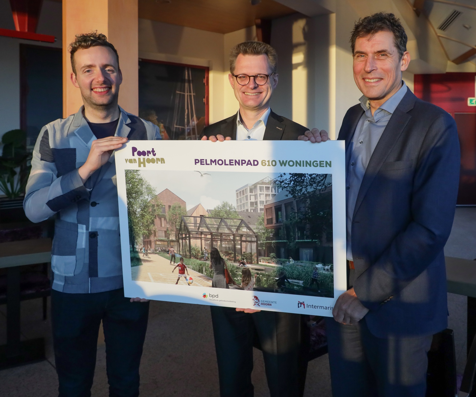 Woningcorporatie Intermaris, BPD | Bouwfonds Gebiedsontwikkeling en gemeente Hoorn hebben een overeenkomst gesloten over de ontwikkeling van het Pelmolenpad. De partijen hebben afgesproken om 610 duurzame huur- en koopwoningen te bouwen, in alle prijscategorieën. Dit betekent een flinke stap vooruit in de ontwikkeling van de Poort van Hoorn.