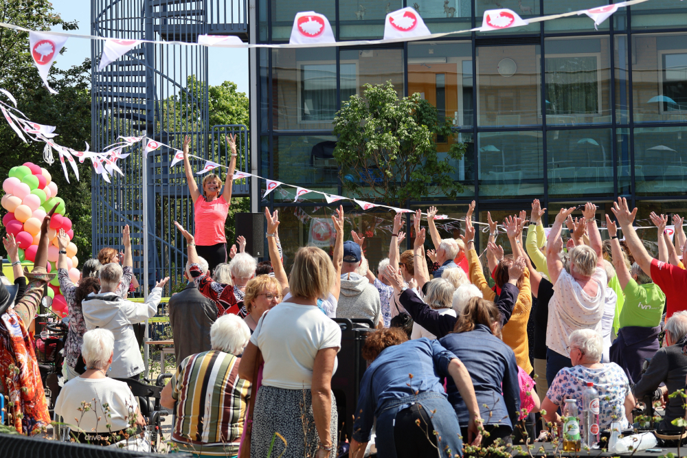 Het Olga Commandeur plein bij Betsy Perk is officieel in gebruik. De beweegtuin met speeltoestellen werd donderdag 8 juni feestelijk geopend door oud-topsportster Olga Commandeur en wethouder Karin Hakhoff. Onder toeziend oog van de vele aanwezige senioren die actief meededen aan de warming-up. Met haar enthousiasme kreeg Olga iedereen in beweging. Want spelenderwijs bewegen is voor jong en oud belangrijk.
